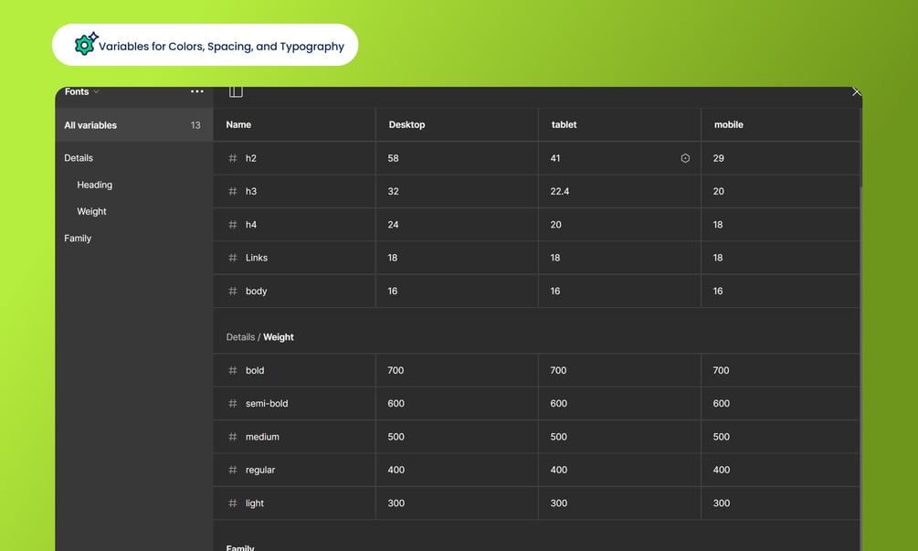 - Responsive Variables: The template is built get the perfect values for any screen size, whether on desktop, tablet, or mobile devices.